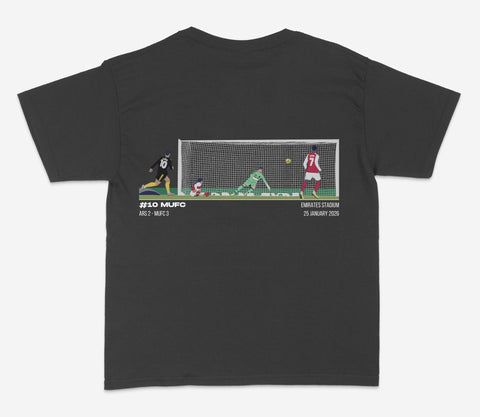 The goal that broke the internet. We turned Cunha’s masterclass vs Arsenal into a wearable masterpiece. Featuring the iconic moment hand-drawn on the back and our signature GOAT logo on the chest.